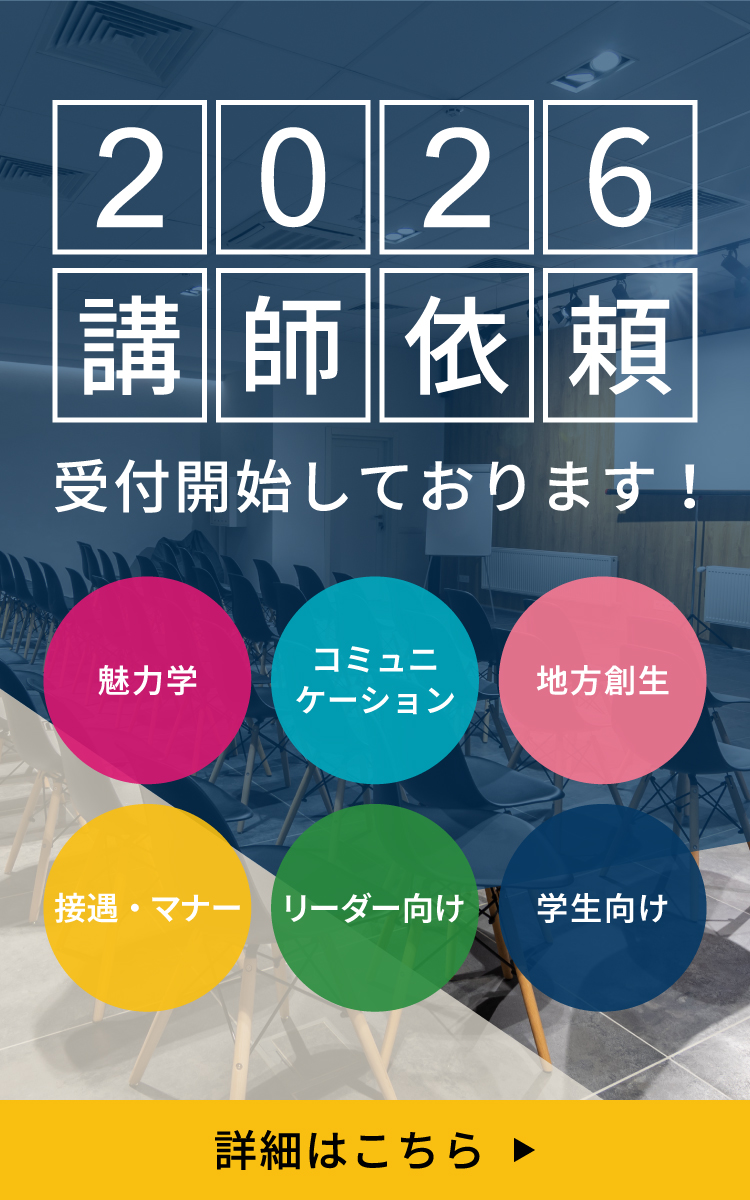 講師依頼の詳細はこちらから ▸ top_pctop_pc5top_pc3top_pc2top_pc4 top_sptop_sp5top_sp3top_sp2top_sp4 2023年9月10日(日) 出版記念講演会 in 鹿児島 予約受付フォーム 2023年9月10日(日) 出版記念講演会 in 鹿児島予約受付フォーム 宮之原明子の講師依頼・執筆・取材に関するお問い合わせは、こちらまで プロフィール 宮之原 明子 鹿児島純心女子短期大学卒業後、家業の人材サポート会社株式会社清友に入社。イベント・モデル・デモンストレーション事業など新規事業に取り組み、接客・販売指導など1万人を超えるスタッフへの指導を行う。 詳細はこちら プロフィール 宮之原 明子 鹿児島純心女子短期大学卒業後、家業の人材サポート会社株式会社清友に入社。イベント・モデル・デモンストレーション事業など新規事業に取り組み、接客・販売指導など1万人を超えるスタッフへの指導を行う。 詳細はこちら 講師カテゴリー 魅力学 詳細はこちら コミュニケーション 詳細はこちら 接遇・マナー 詳細はこちら リーダー向け 詳細はこちら 学生向け 詳細はこちら 地方創生 詳細はこちら お知らせ ブログ「誤解されない伝え方の3つのヒント」更新しました • 2025年11月7日 いつもご覧いただきありがとうございます。 アメブロを更新しました。 「誤解されない伝え方の3つのヒント」続きを読む » ブログ「「人と話すときに緊張してしまう」をなくす3つのポイント !」更新しました • 2025年10月20日 いつもご覧いただきありがとうございます。 アメブロを更新しました。 「『人と話すときに緊張してしまう』をなくす3つのポイント続きを読む » ブログ「初対面で『この人、感じがいいな』と思われる3つの習慣」更新しました • 2025年10月2日 いつもご覧いただきありがとうございます。 アメブロを更新しました。 「初対面で『この人、感じがいいな』と思われる3つの習慣」続きを読む »